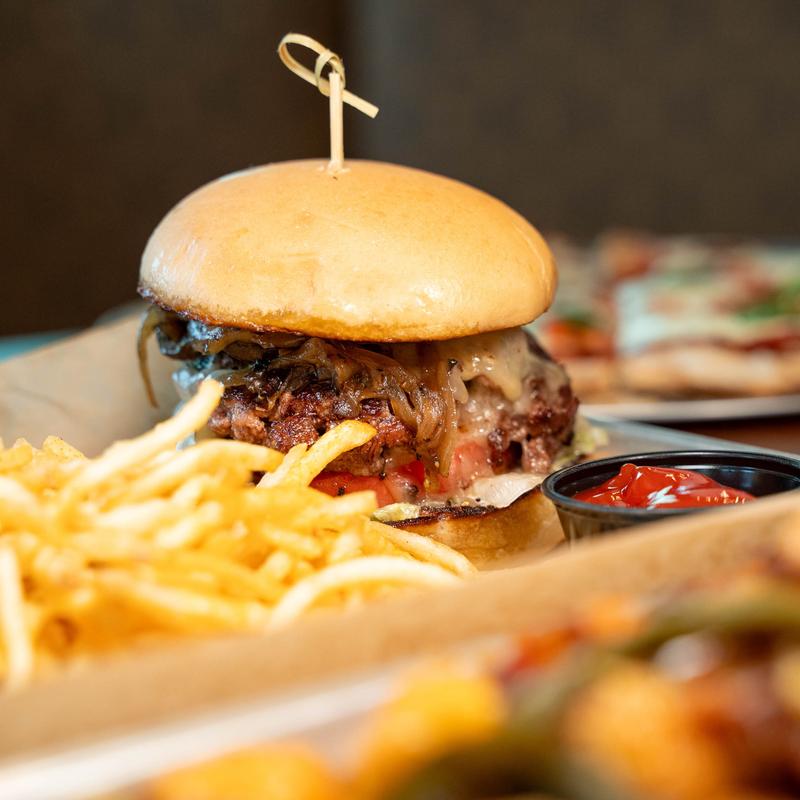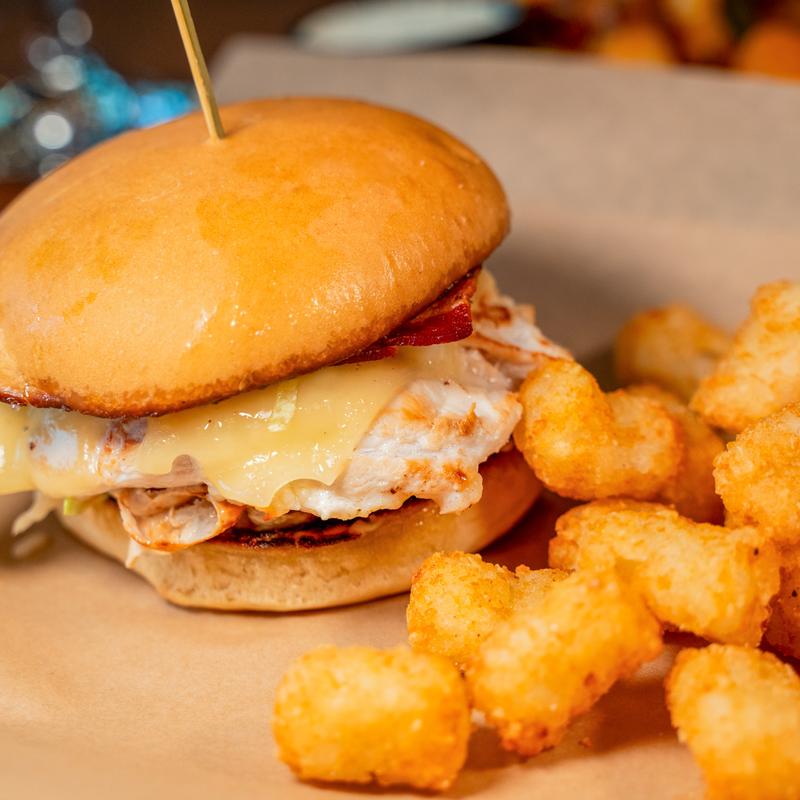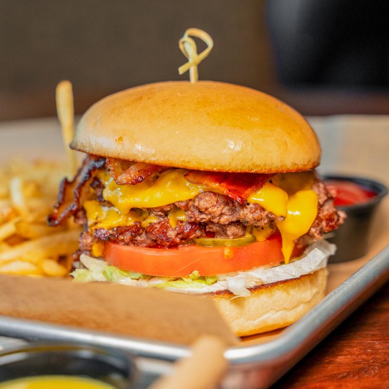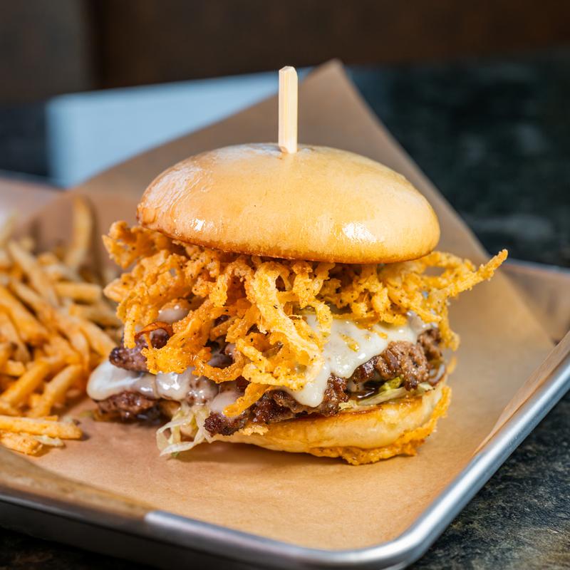 All burgers come with 2 smash patties on a fresh baked bun and served with a choice of fries or tots. Plant Based patty available upon request ($3 upcharge), Gluten free buns available upon request ($2)