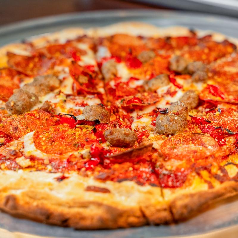 House-made San Marzano tomato sauce, mozzarella cheese, pepperoni, sausage, peppadew peppers, pecorino, oregano.