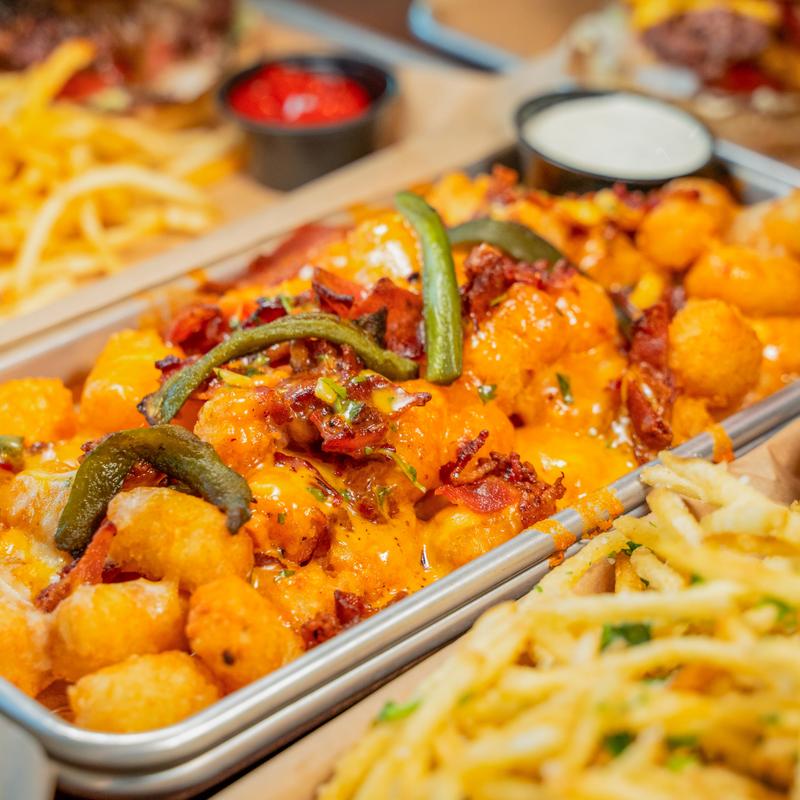 Monterey jack and cheddar cheese, queso, bacon, grilled sliced jalapeños, side of jalapeño ranch.