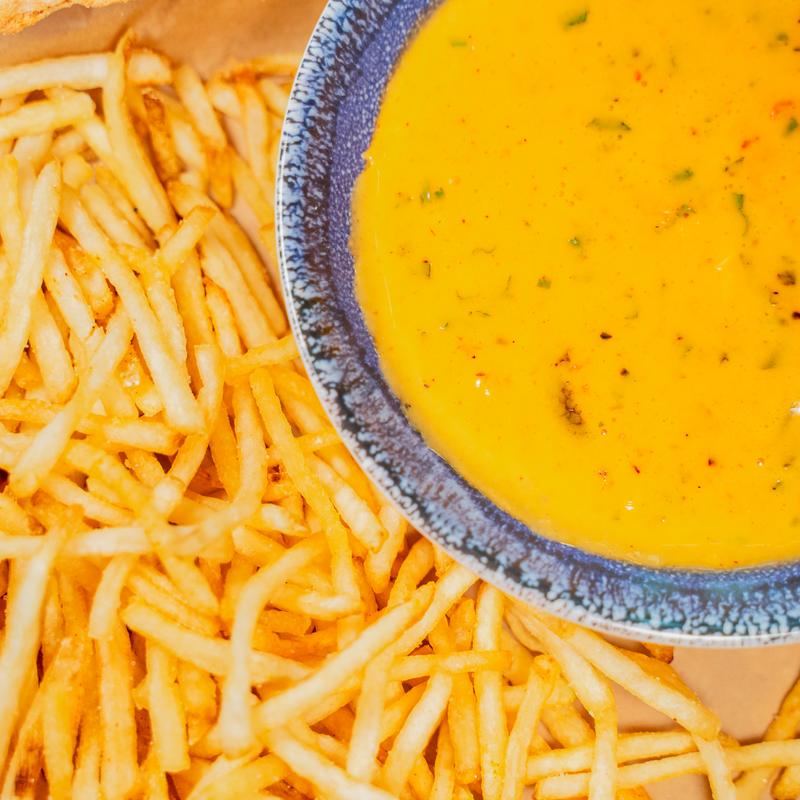 Fresh, hand-battered, pickle-brined tenders. Tossed in your choice of sauce or dry rub. Served with crispy French fries or tots and your choice of dipping sauce.